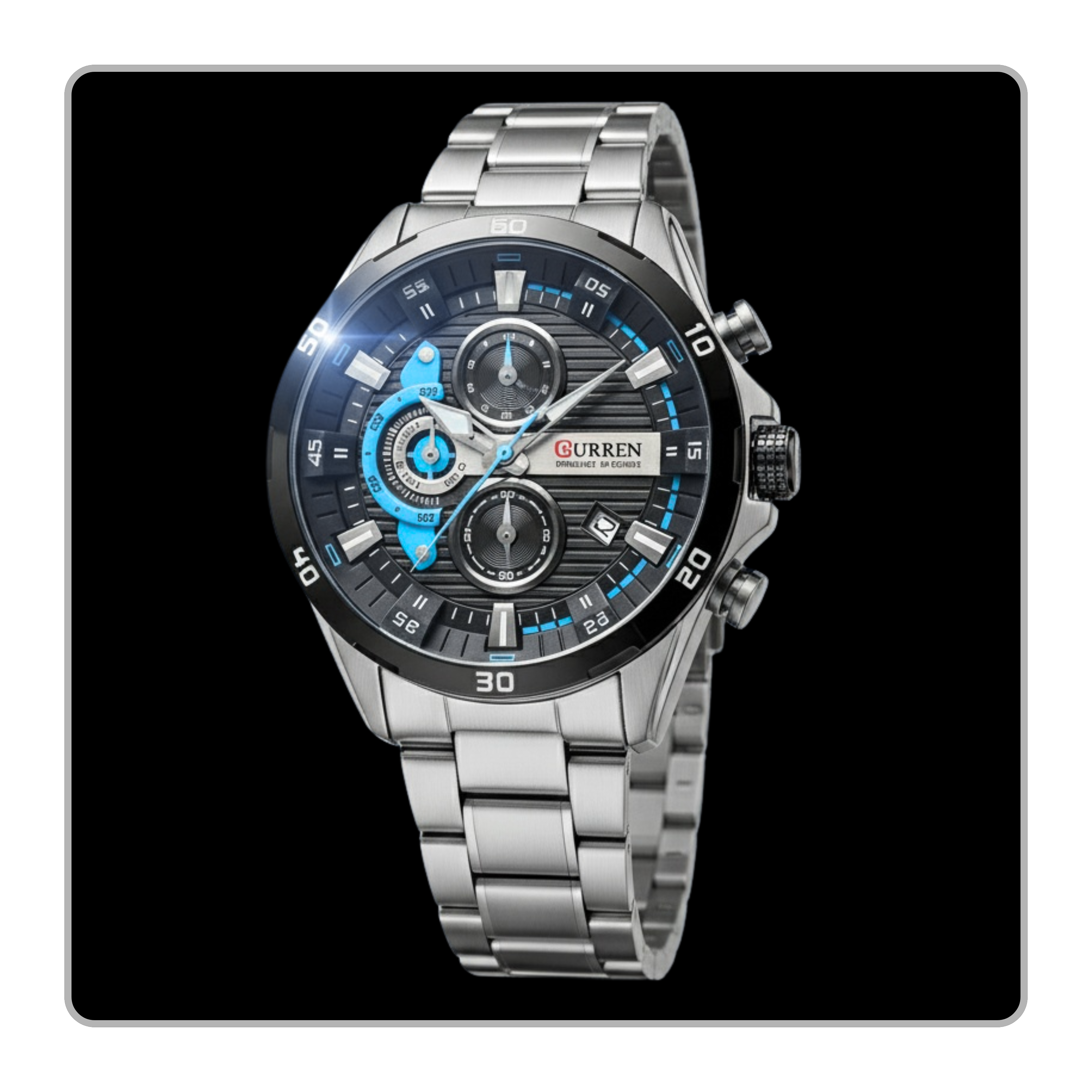 - Diseño de Esfera: Estilo racing con detalles en azul vibrante y bisel decorativo.